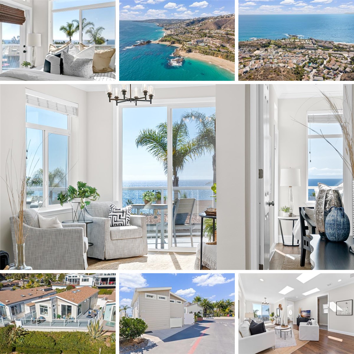 "Sea" the best ocean, island & sunset views from nearly every inch! Awaken to ocean. Fall asleep to sunset. Here's coastal living at its finest: A turnkey, modern beach home with 180° panoramic view. A quiet location - protected from noise of hwy and parking. A light-filled floor plan with skylights and clerestory windows. Luxury constructed with high ceilings and doors. A fresh, cool, neutral interior. All new quartz counters and faucets. An open-concept great room of living, dining, kitchen, and niche. Ample outdoor living areas with wrap-around deck, a little lawn, and orange tree. Two bedrooms with walk-in closets. Primary bedroom with direct ocean views; the second "seas" big blue thru its entryway. Fully-fenced, plus gated parking area. A/C and appliances included. And, convenient 2-car parking at its front gate. | Located in terrific Laguna Terrace! Offering fun & relaxation at your doorstep. Enjoy fabulous community clubhouse; heated-year-round pool & spa; well-equipped fitness center; event room with fireplace lounge; full kitchen; work bar & WIFI; patios; and activities. Plus, fabulous staff who keep all in tip-top shape. | Leave the car behind: Just steps to shops & dining. Set above The Montage Resort; beach; and oceanfront parks, paths, and tidepools. Near Aliso Creek on-the-beach cafe and The Ranch dining & golf. Travel by trolley thru Laguna and neighboring coastal towns, including Dana Point Harbor with boats to Catalina Island And definitely don't miss the Festival of Arts, Pageant of Masters, Sawdust Festival, plus free outdoor concerts and so much more. Great for all ages: within the prestigious Laguna Beach School District, plus classy downtown Susi Q Senior Center. | To buy on fee land in Laguna, you'd pay over $3,000,000 + $33,000 annual property taxes (approx). But in Laguna Terrace, it's just $477,000 + $4,611/mo starting land lease. Don't miss this value. Come "seas" the day!